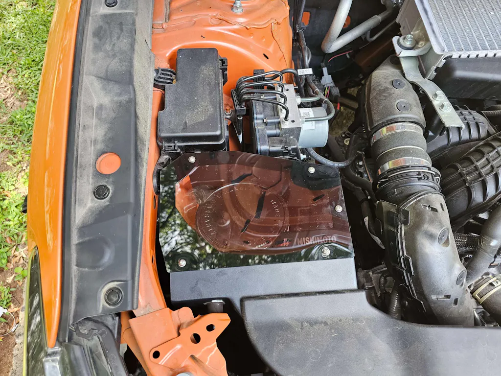 Things to note. Expect some clip breakage. Get yourself a set of replacement clips for the skid plates and shielding to be safe. Your intake hose will be a bit annoying to get off, so you will pretty much have to crawl under the car to get to it. I recommend positioning the hose clamps to where you can get away with not taking all the panels off. The clear top's **** holes may be slightly unaligned with the machined holes, and you may have to play with them to get them screwed down all the way, but after ripping the car in around 100 degree heat, making all the power it is at the moment, they are holding strong, nothing loose, and should last you as long as you have the car.