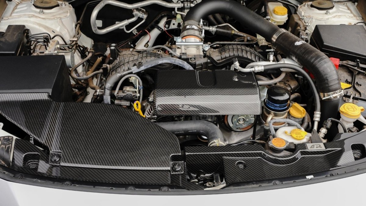 The flow of air is not only limited to the outside of a car. To maximize cooling capabilities, a radiator needs a direct flow of air to allow an engine to maintain consistent temperatures on the race track. Because of structural gaps above the radiator, the flow of air could escape making the radiator not as efficient as it could be. To help improve the flow of air into the radiator, APR Carbon Fiber Radiator Cooling Plates can be utilized to channel the flow of air directly to the radiator. This will improve the efficiency of the radiator while adding a high-tech, race-inspired look to your engine bay.