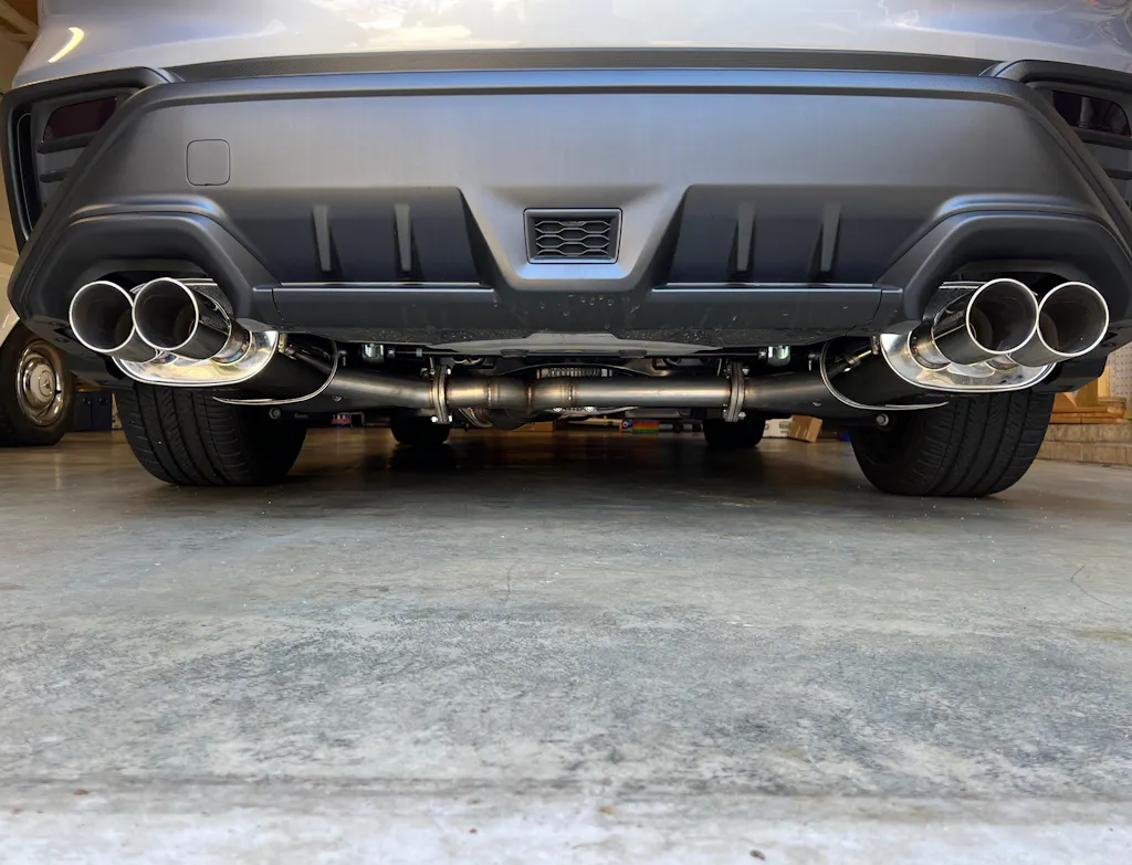 I've been doing research on Cat Backs for my 2024 WRX for months and finally decided to purchase the Revel Medallion Touring-S. I'm trying to stay somewhat economical and stick with an OEM+ build. The Revel ticks both boxes. Let's start with price. I don't believe there's a Cat Back out there that can compete with this Revel at this price level. Next, shipping. I ordered it around 3PM on a Friday and it showed up at my door 48 hours later. I was blown away! To be honest, based on other reviews out there I was worried about packaging and damage. The box did have a hole in it and was a bit scrapped up. The protective material inside seemed to have no order to it. It just kind of sat up against the various sections of piping. I was happy there was no damage. If there was, I know Subimods would address it. In inspecting the welds and overall built quality, I'd say it's not top of line, nor did I expect it to be, but it is built very well. Installation was done by a reputable muffler shop, and I was told fitment was great. They were done in 30 minutes. One muffler however hung about 1/4 inch lower than the other. This was easily remedied using a hose clamp around the rubber hanger to force it up. Now the most important topic, sound. It provides pretty much what I expected and mostly wanted, OEM+. I'd say on a volume level, if the OEM exhaust on a 1-10 scale is a 1, the Revel notches it up to a 3. I'll admit, I would not mind another notch or 2 but then again, it's nice driving around town and not having something overly loud. The tone is what sets it apart more from OEM. The Revel has a much deeper tone to it and IMO sounds great. This exhaust is very tame with day-to-day driving. With the increase in volume and deeper tone, it has more of a presence than OEM without being obnoxious or unbearable in the cabin and adds to the overall pleasure of driving the car. If you get on the throttle and punch it above 4,000 RPM, it gives off a throatier sound and makes itself a bit more pronounced. Downshifts are nice. I have yet to hear any pops through some say it will. Not something I really care about anyway. Finally, looks. The upgrade from 3" to 3 1/2" tips is nice and I like it better than the 4" most aftermarkets kits come with. I think 4" looks to large on this car but that's just me but it did play into my purchasing decision. The stainless steel looks great and of course the larger piping, resonator and smaller mufflers are all pluses. My biggest reservation before ordering this was how low the mufflers seemed to hang and expose themselves when looking at the car from the rear. While this is somewhat true, I wouldn't say it's that bad but if I could change one thing, I would raise them up about another 1/4 inch or so. I may try this with the hose clamp trick or different rubber hangers in the future. Not only would this hide more of the mufflers but also bring the tips into the bumper cavity a little bit more. I'm being picky here now though. In short, I don't regret my decision at all. If you're looking for something just a bit loader and deeper toned than OEM, there are handful of good options out there but for the price this Revel Medallion is hard to beat.